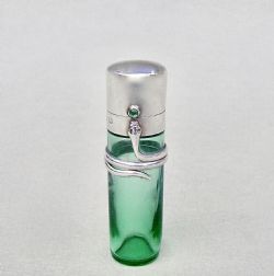 This elegant silver and mint green guilloche enamel scent bottle bears the marks of the renowned Mappin & webb and is dated London 1947. The exquisite pale green enamel screw-top lid fitted on a clear glass body incised with rectangular patterns. The neck gilded. The inner lid fitted wit the original cork. The base star incised. Hallmarks: Mn&Wb for Mappin & Webb. London Assay Mark. Date letter "M" for 1947. Lion Passant. London Assay Mark. Condition: Excellent. Enamel lid in excellent condition. Glass in perfect condition. No chips or cracks. Dimensions: Height: 3.5cm / 1.4 inches. Diameter: 6.5cm / 2.4 inches. Postage: PLEASE DO NOT FORGET TO ADD POSTAGE AT CHECKOUT. Postage UK: £8.00 Special Delivery Next day. Postage overseas: £20.00 International Signed For. You can pay by PayPal, bank transfer, cheque, debit or credit card. To pay by PAYPAL please add P&P and click on button below. To pay by credit or debit card over the phone or by cheque, please contact me on 01449 760585. Internal Ref: JANV94