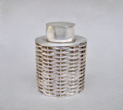This fabulous and very elegant large sterling silver coffee pot is dated Birmingham 1933. It is very much of its era. The tapered rectangular body with canted corners and slightly domed hinged lid. It has a brown bakelite finial and handle and is raised on four distinctive bracket feet. A very stylish and contemporary initial "M" engraved on both sides. It is boasting an excellent silver gauge with an impressive weight of over 23 ounces.