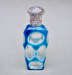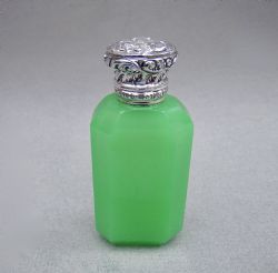 VERY RARE VICTORIAN SILVER VASELINE GLASS SCENT BOTTLE, CIRCA 1870