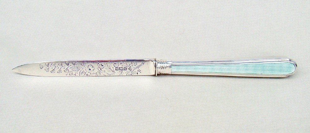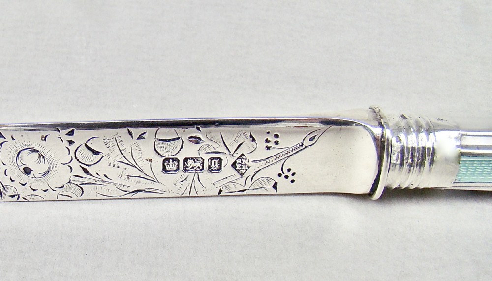 STUNNING SILVER AND GUILLOCHE ENAMEL LETTER OPENER BY MARTIN HALL & CO, SHEFFIELD 1900