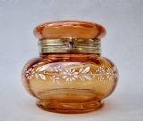 This exquisite Mary Gregory enamelled glass dressing table jar originates from France and dates circa 1890. The rich orange colour is very unusual and rather striking. The lobed body richly enamelled with foliate decorations. Dimensions: Diameter: 11cm / 4.2 inches. Height: 10cm / 4 inche. Condition: Very good. Postage PLEASE DO NOT FORGET TO ADD POSTAGE AT CHECKOUT. Postage UK: £5 Royal Mail Tracked 24. Postage overseas: £20 International Signed For. You can pay by PayPal, bank transfer, cheque, debit or credit card. To pay by PAYPAL please add P&P and click on button below. To pay by credit or debit card over the phone or by cheque, please contact me on 01449 760 585. Internal Ref: OCT87