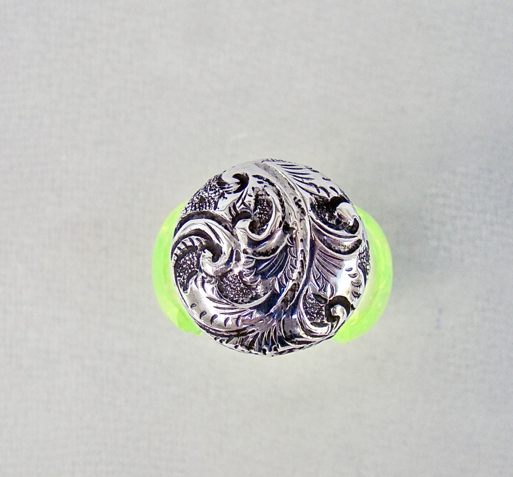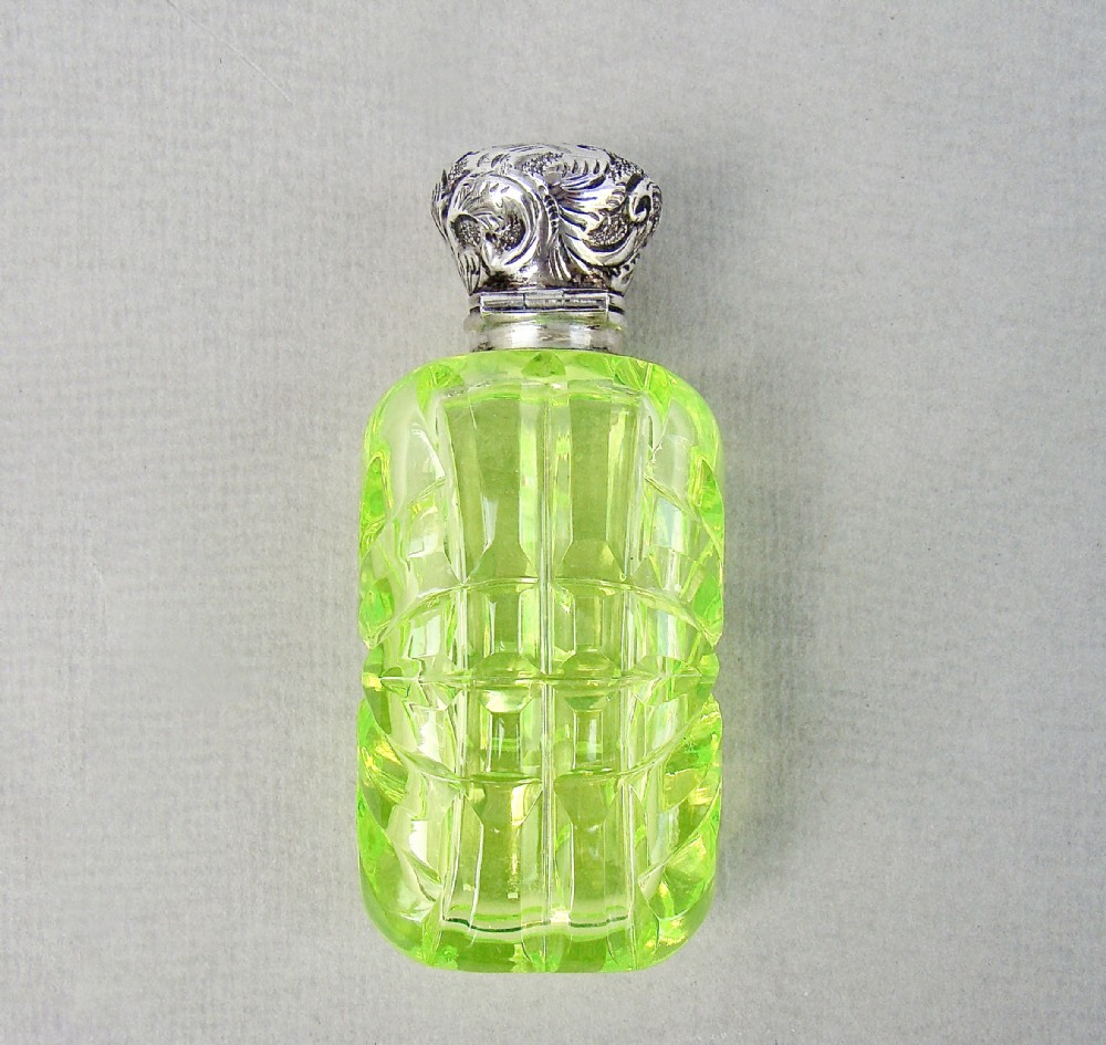 exquisite victorian silver slicedcut uranium glass scent bottle circa 1890