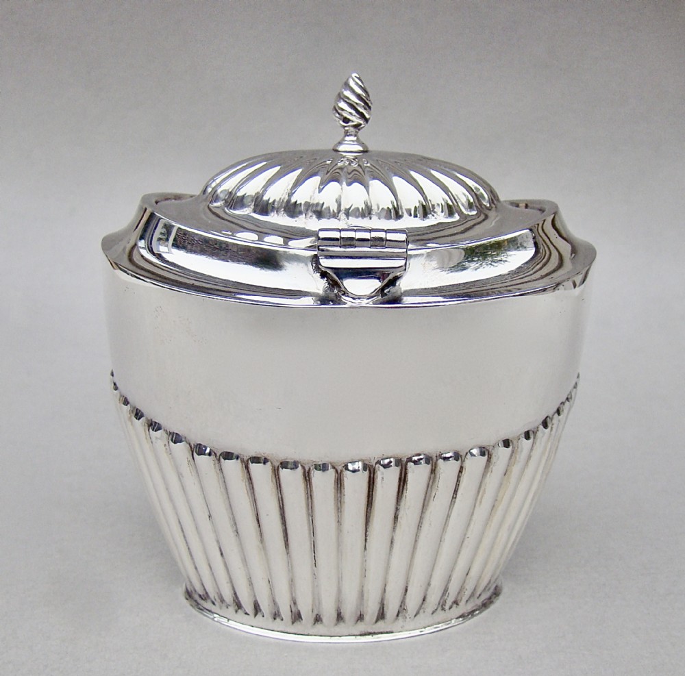 ELEGANT EDWARDIAN SILVER TEA CADDY BY THE BARKER BROTHERS, CHESTER 1908
