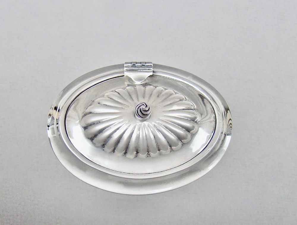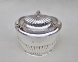 This good quality, good gauge, solid silver sugar bowl is dated Chester 1908 and bears the marks of the Barker Brothers. Of traditional form, the fluted lower section raised on a flat oval pedestal base. The domed hinged lid with decorative flame finial. The interior with the original pale gilt wash. Hallmarks: HEB over FEB for the Barker Brothers. Chester Assay. Lion Passant. Date letter "H" for 1908. Dimensions and weight: Height up to finial: 12cm / 3 inches. Length:: 10cm / 4 inches. Width: 8.5 cm / 3.2 inches. Weight: 135 g / 4.3 oz. Condition: In very good condition. Hallmarks a little faint but readable . Partial hallmarks on inner lid very crisp. Delivery: PLEASE DO NOT FORGET TO ADD POSTAGE AT CHECKOUT. Postage UK: £5 Royal Mail Tracked 24 Postage overseas: £20 International Signed For. You can pay by PayPal, bank transfer, cheque, debit or credit card. To pay by PAYPAL please add P&P and click on button below. To pay by credit or debit card over the phone or by cheque, please contact me on 01449 760 585. Internal Ref: OCT80