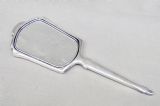 ART DECO SILVER PLATED GUILLOCHE ENAMEL HAND MIRROR, CIRCA 1930