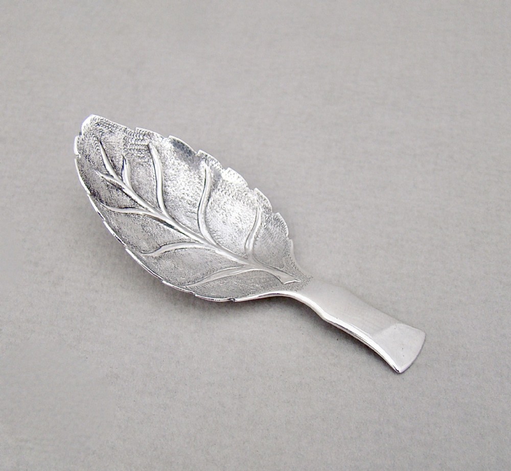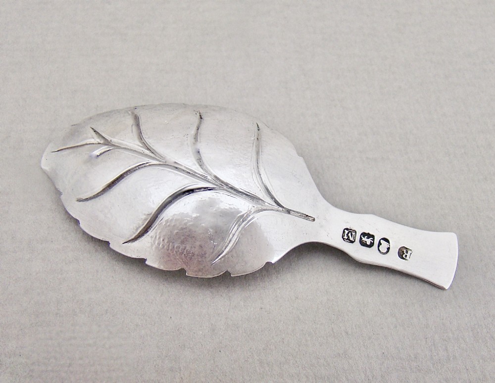 RARE GEORGIAN SILVER LEAF-SHAPED SILVER CADDY SPOON BY ROBERT RUTLAND, LONDON 1807