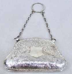 UNUSUAL GEORGE V SILVER COCKTAIL PURSE BY HENRY CLIFFORD DAVIS, BIRMINGHAM 1917