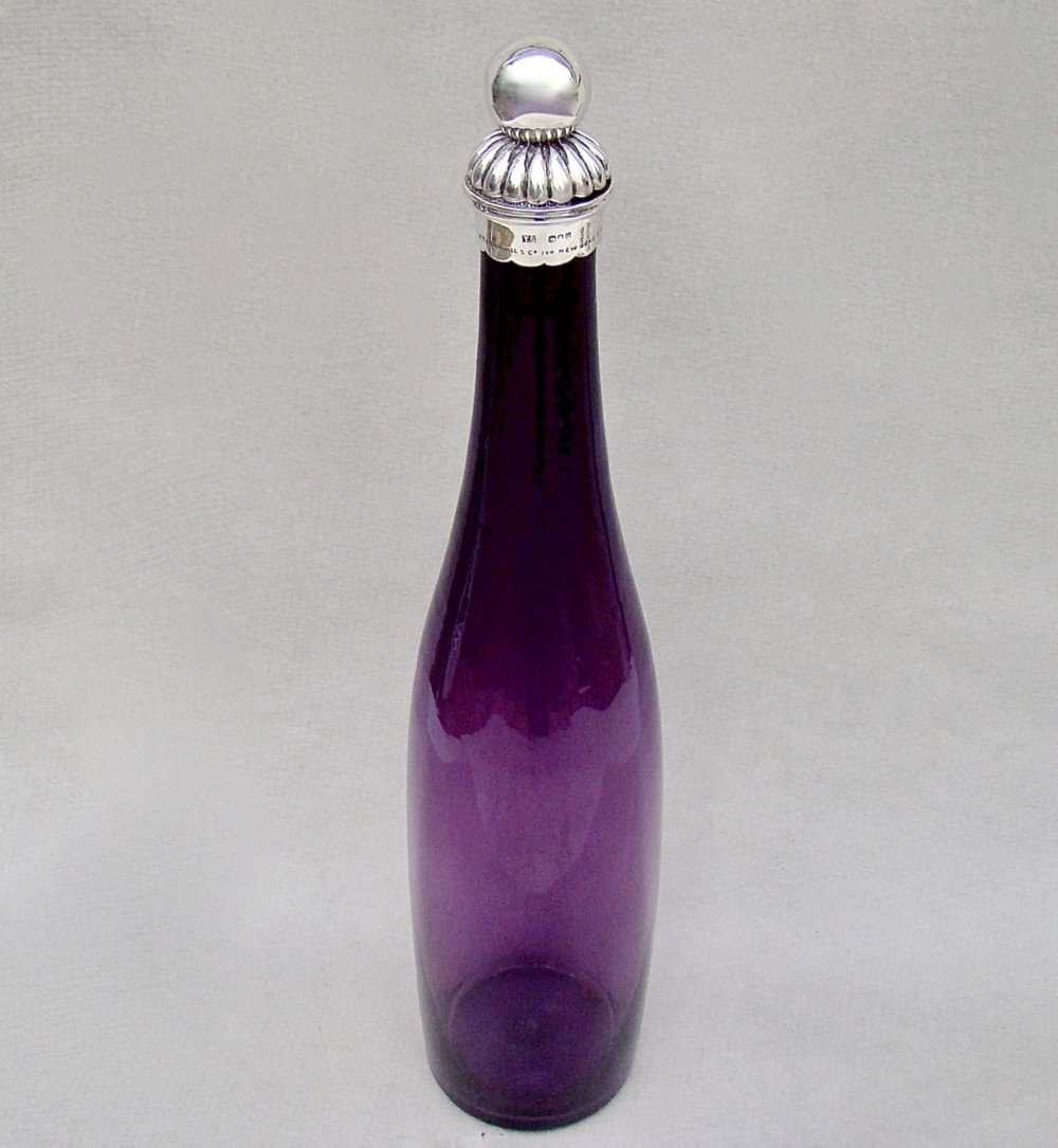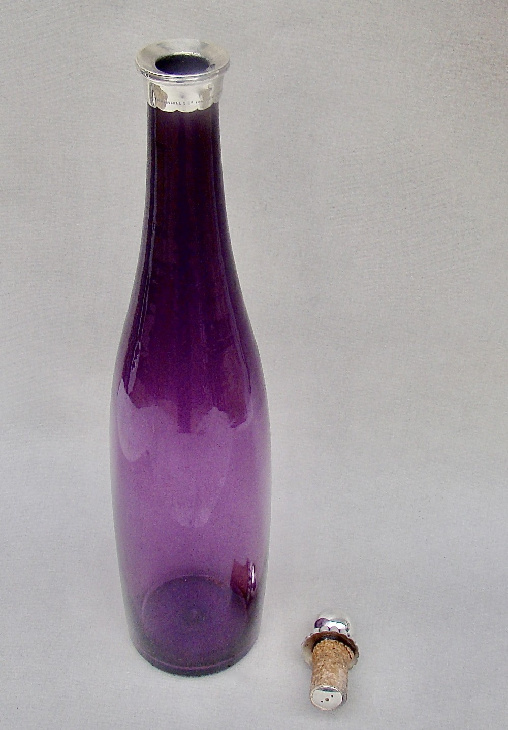 RARE VICTORIAN SILVER MOUNTED AMETHYST GLASS DECANTER BY THOMAS STAPLETON, LONDON 1889