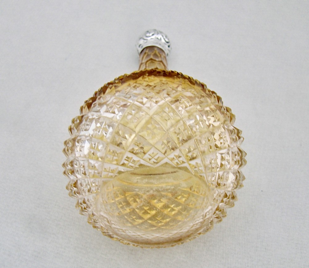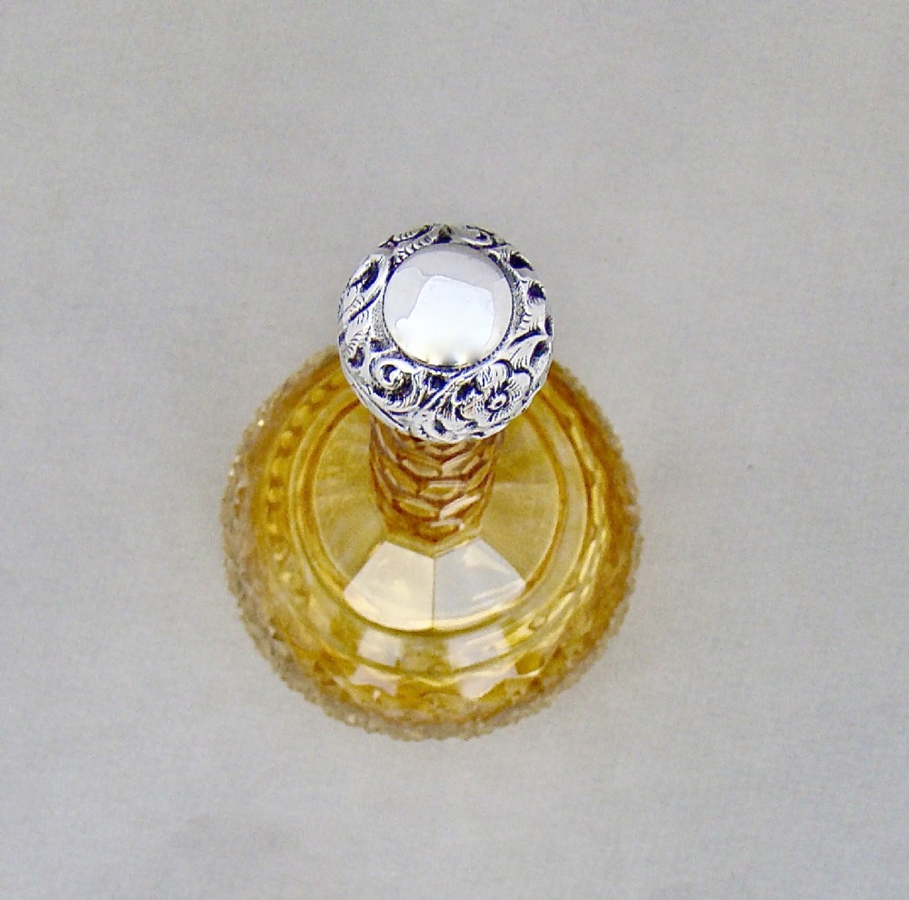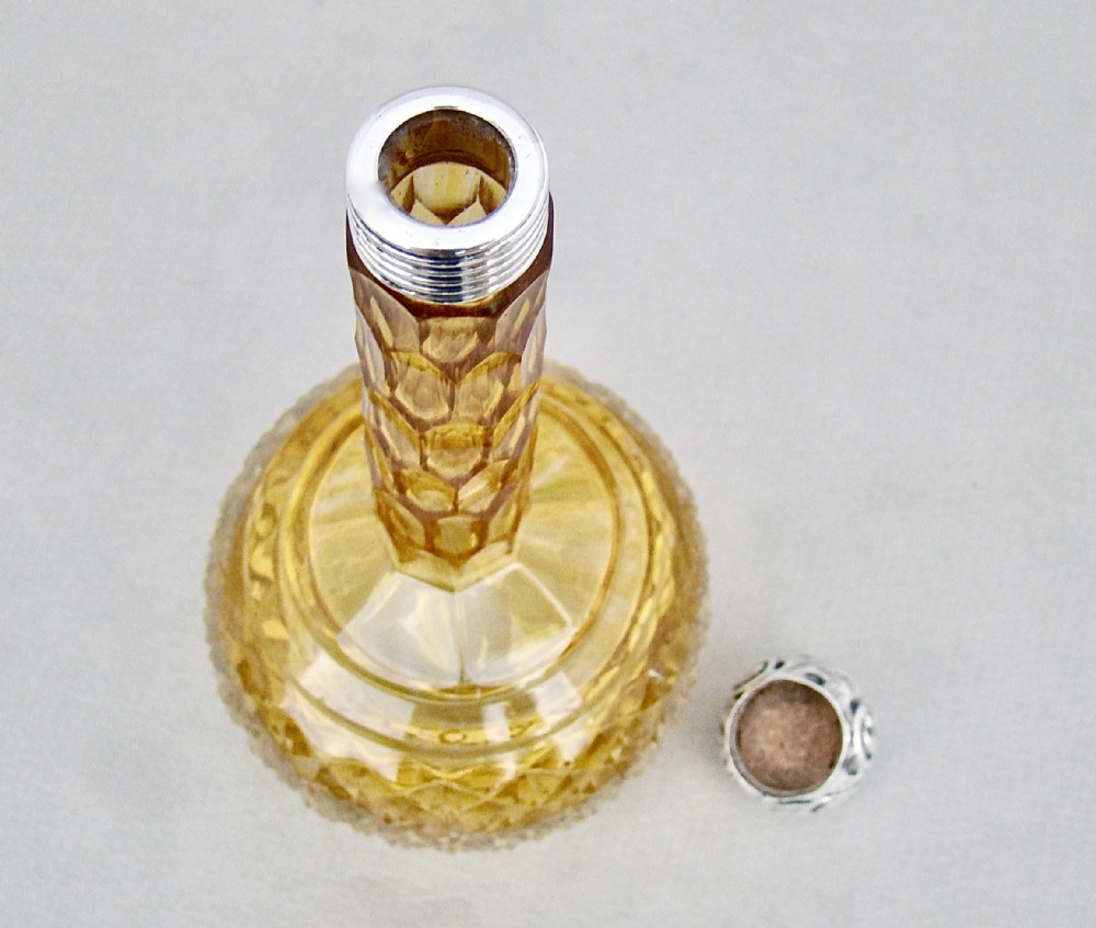 RARE VICTORIAN SILVER MOUNTED GRADUATED AMBER CUT GLASS SCENT BOTTLE BY CHARLES MAY, BIRMINGHAM 1898
