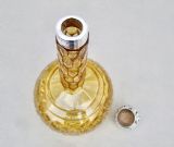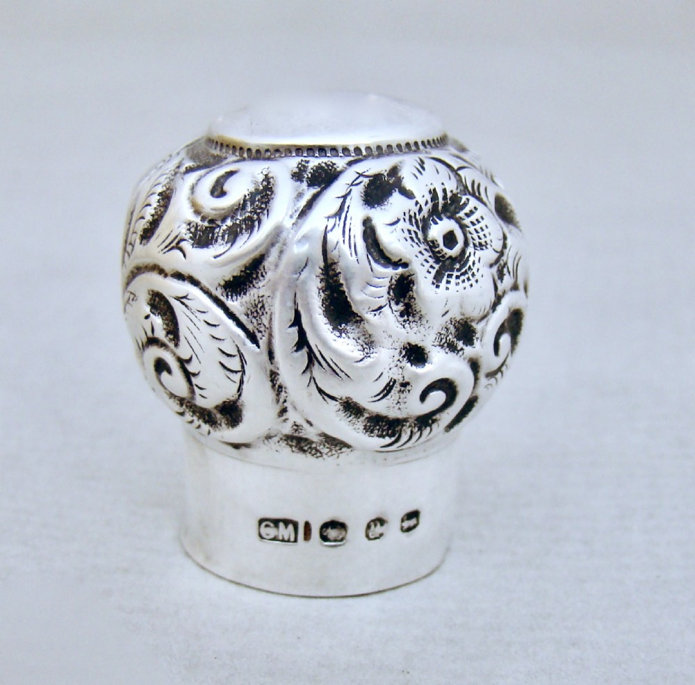 This is a stunning 8 inches high Victorian onion-shaped crystal glass scent bottle with a beautiful screw-top fully hallmarked silver lid. The amber glass body sliced-cut with diamond patterns. The darker shaded neck sliced-cut with honeycomb patterns. The lid embossed with foliate scrolls surrounding a vacant reserve. The inner lid with original cork. Hallmarks: CM for Charles May. Birmingham Assay mark. Lion passant. Date letter "y" for 1898. Condition: Very good. Silver lid in good condition , a little uneven at places. Glass in excellent condition. No chips or cracks. Dimensions: Height: 20cm / 8 inches. Diameter at widest: 9.5cm / 3.5 inches. Delivery: PLEASE DO NOT FORGET TO ADD POSTAGE AT CHECKOUT. Postage UK: £5 Royal Mail Tracked 24. Postage overseas: £25 International Signed For. Postage USA (including US import duties): £45.00 You can pay by PayPal, bank transfer, cheque, debit or credit card. To pay by PAYPAL please add P&P and click on button below. To pay by credit or debit card over the phone or by cheque, please contact me on 01449 760 585. Internal Ref: NOVE74