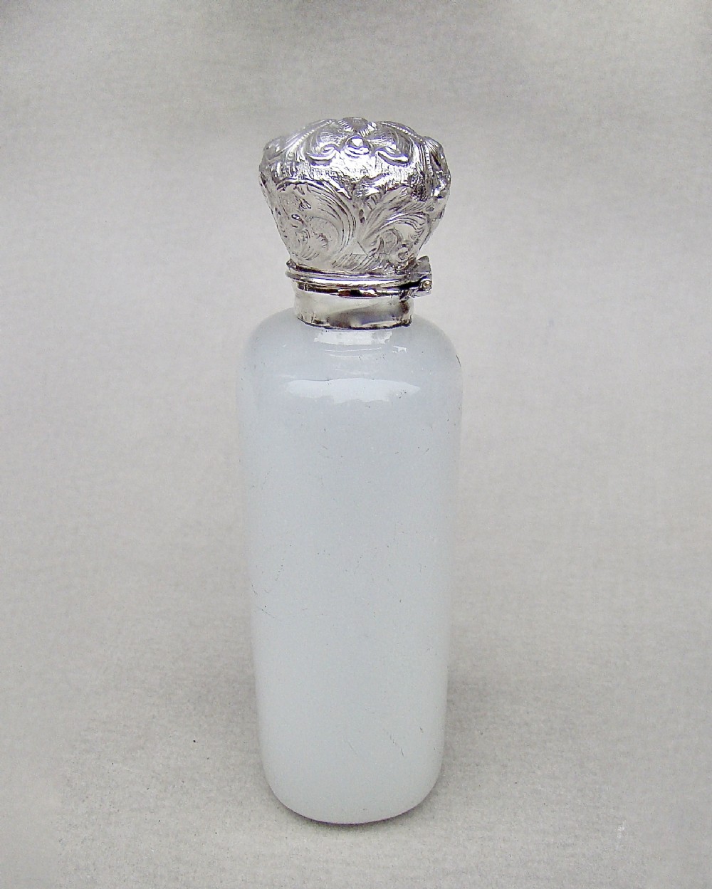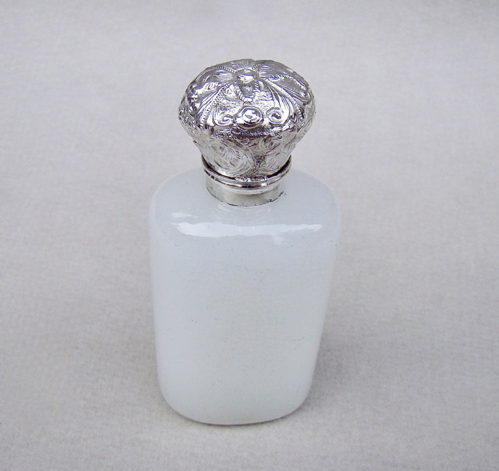 VICTORIAN SILVER AND WHITE OPALINE GLASS SCENT BOTTLE, CIRCA 1880