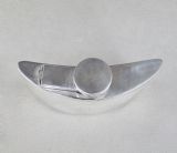 This distinctive solid silver hip flask was made by William Neale and is hallmarked for Birmingham 1920. It has an unusual curved crescent form designed to fit comfortably in a pocket and a hinged flip bayonet lid with locking mechanism. The inner flip lid impressed with a patented registration number. The flat narrow pedestal base allowing the flask to stand upright. It has a good silver gauge and all parts are separately hallmarked. Hallmarks: WN for William Neale. Birmingham Assay Mark. Date letter "u" for 1920. Lion Passant. RD number: 649007 Condition: Very good. No dings or dents. Good watertight seal on the lid. Dimensions and Weight: Height: 8cm / 3 inches. Width: 9.5cm / 3.6 inches. Depth: 2 cm / 0.6 inches. Weight: 4.3oz / 122g. Postage: PLEASE DO NOT FORGET TO ADD POSTAGE AT CHECKOUT. Postage UK: £9 Special Delivery Next day. Postage overseas: £20 International Signed For. Postage USA (including US import duties): £45.00 You can pay by PayPal, bank transfer, cheque, debit or credit card. To pay by PAYPAL please add P&P and click on button below. To pay by credit or debit card over the phone or by cheque, please contact me on 01449 760 585. Internal Ref: DEC87
