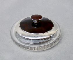 ART DECO SILVER MOUNTED OVERLAY AMETHYST GLASS ROUGE POT BY HASSET & HARPER, BIRMINGHAM 1922