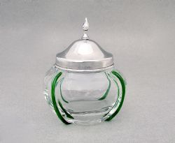 This exquisite Art Deco silver lidded small Bohemian glass jar is dated Birmingham 1925. The amethyst overlay glass cylindrical jar cut with geometric patterns and having a star incised base. Fitted with an elegant engine-turned silver lid finely engraved with engine-turned decorations surrounding a vacant diamond-shaped reserve. The inner lid gilt. Hallmarks: H&H Ld for Hasset & Harper Ltd. Birmingham Assay Mark. Lion Passant. Date letter "x" for 1922. Dimensions: Height: 5cm / 2 inches. Diameter: 4cm / 1.4 inches. Condition: Good. No chips or cracks to the main body. Silver lid in very good condition. Minor bloom to the inner glass. Delivery: PLEASE DO NOT FORGET TO ADD POSTAGE AT CHECKOUT. Postage UK: £5 Royal Mail Tracked 24. Postage overseas: £20 International Signed For. Postage USA (including US import duties): £45.00 You can pay by PayPal, bank transfer, cheque, debit or credit card. To pay by PAYPAL please add P&P and click on button below. To pay by credit or debit card over the phone or by cheque, please contact me on 01449 760 585. Internal Ref: DEC83