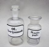 These charming small Victorian glass apothecary jars date circa 1890. Each clear glass body with a white porcelain label heightened in black.Each fitted with their original stoppers. One labelled "Mastic pulv." which refers to mastic powder, derived from the natural resin of the mastic tree. Mastic powder has been used for over 2,500 years for both culinary and health applications. The other labelled "Ol. Bergamott." which is Bergamot oil, also used for various applications.. Dimensions: Mastic Pulv: Height: 11cm / 4.2 inches. Diameter:5.5cm / 2 inches. Ol. Bergamott. Height: 14.5cm / 4.2 inches. Diameter: 8cm / 2.4 inches. Condition: Very good. Postage: PLEASE DO NOT FORGET TO ADD POSTAGE AT CHECKOUT. Postage UK: £5 Royal Mail 24 Postage overseas: £20 Standard International, You can pay by PayPal, bank transfer, cheque, debit or credit card. To pay by PAYPAL please add P&P and click on button below. To pay by credit or debit card over the phone or by cheque, please contact me on 01449 760 585. Internal Ref: DEC77