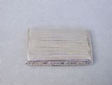 This beautiful Georgian silver snuff box is dated Birmingham 1827 and was made by the renowned Thomas Shaw, who was part of the "toy making" fraternity . Of conventional rectangular form, the front with vacant cartouche and the back with an engine-turned background. The hinged cover with a raised thumb piece and engined-turned borders. The sides embossed with foliate decorations. Opening to reveal the original rich gilt interior. Excellent silver gauge, feels heavy when picked up.