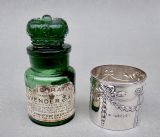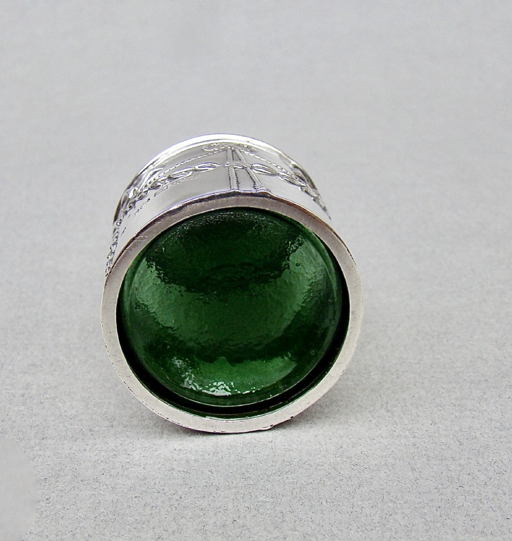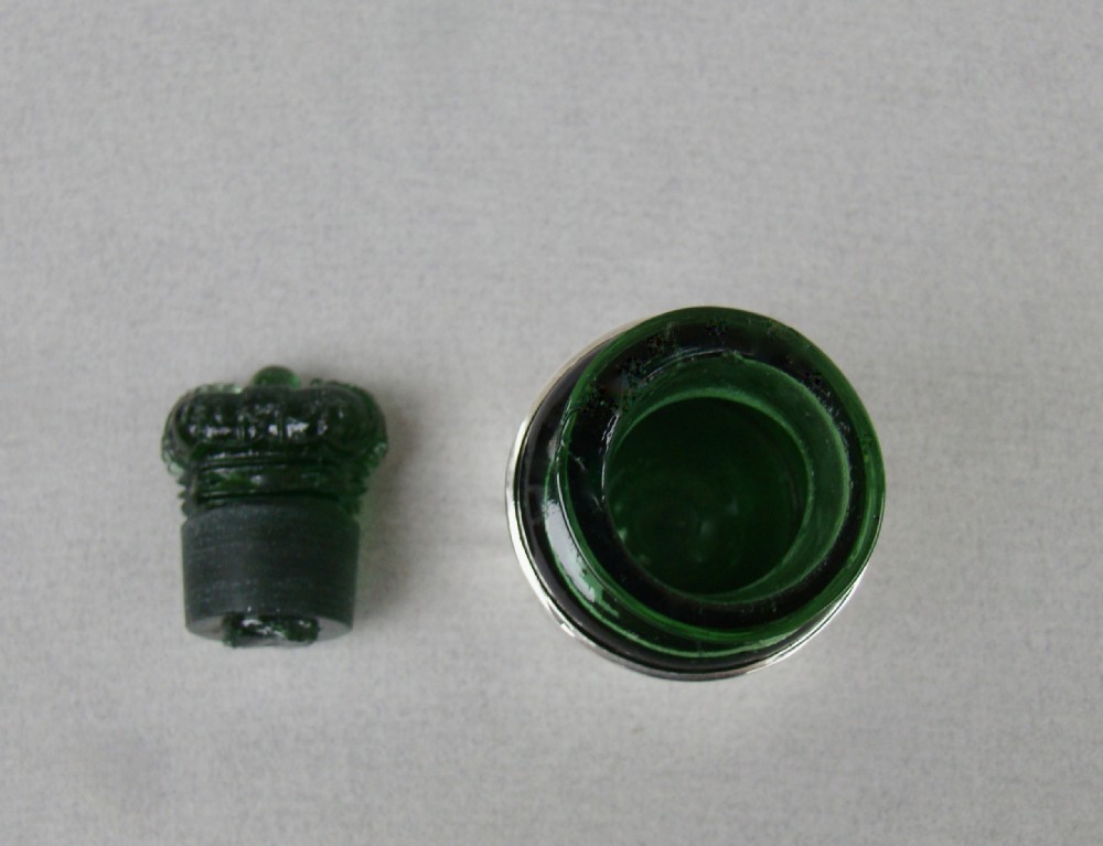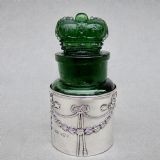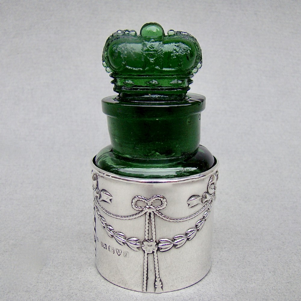 EDWARDIAN SILVER & GREEN GLASS "CROWN PERFUMERY" SCENT BOTTLE BY HENRY MATTHEWS, CHESTER 1907