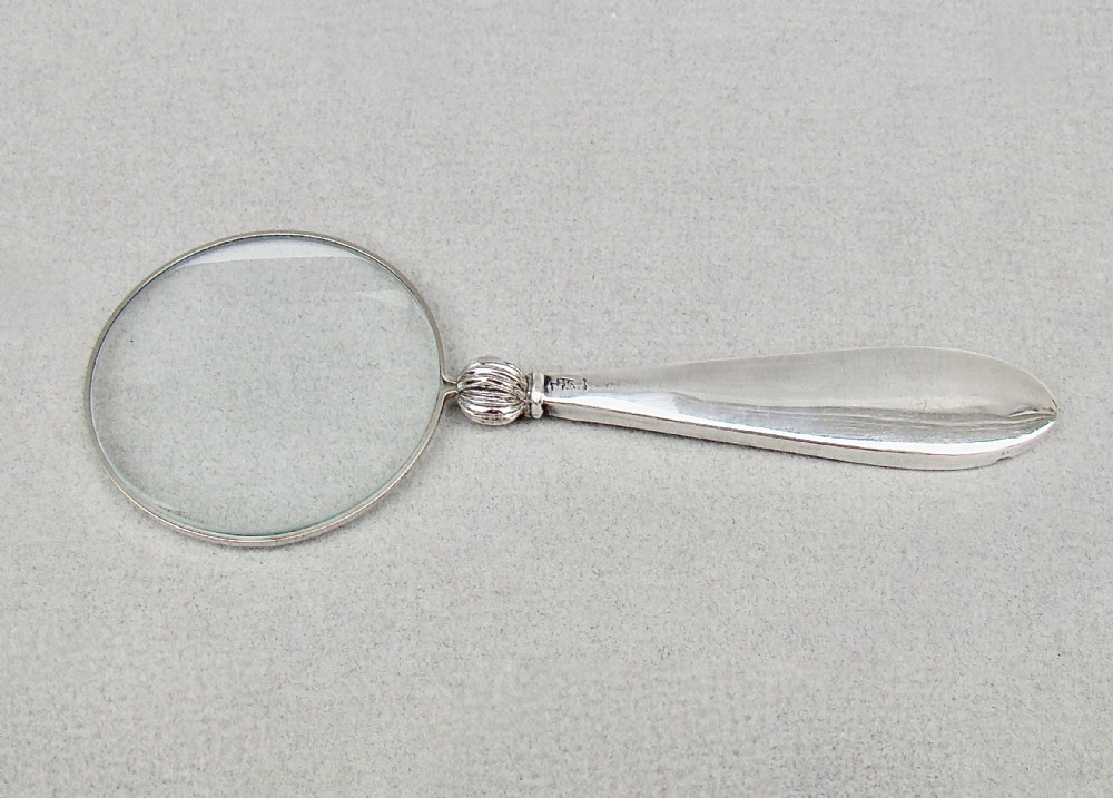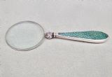 UNUSUAL ART DECO SILVER & SHAGREEN SMALL MAGNIFYING GLASS BY MAPPIN & WEBB, BIRMINGHAM 1928