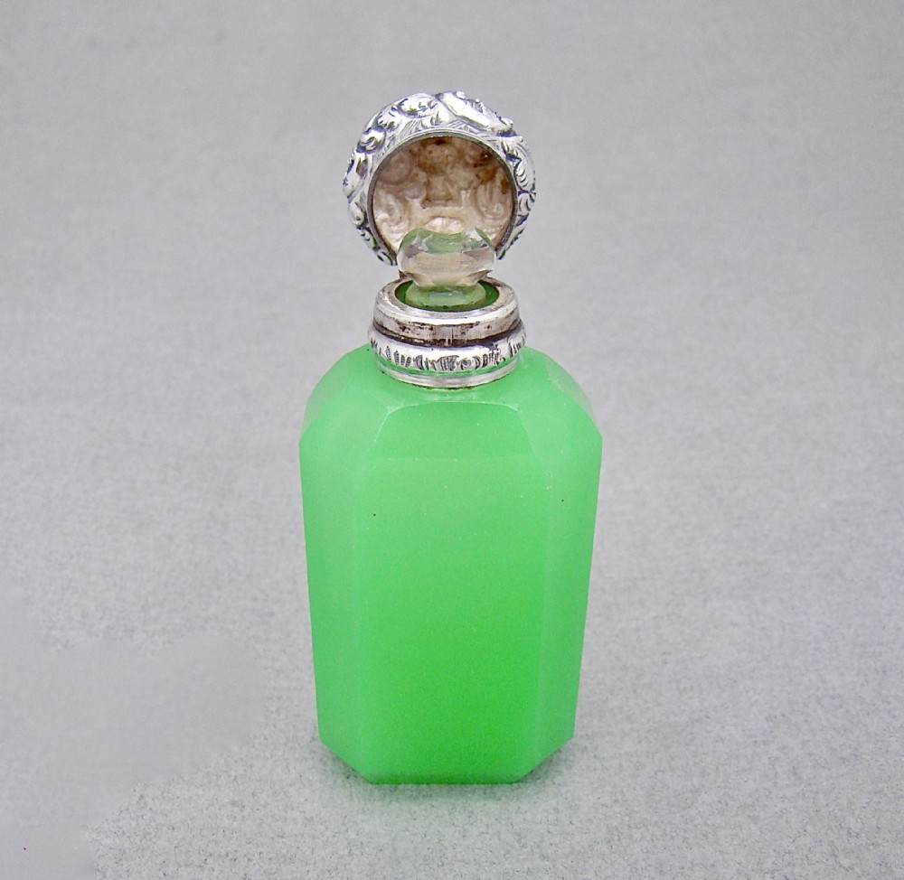 stunning victorian silver mounted opaline uranium glass scent bottle circa 1880