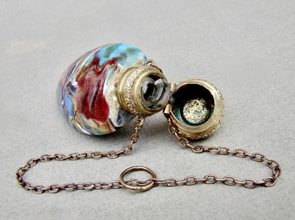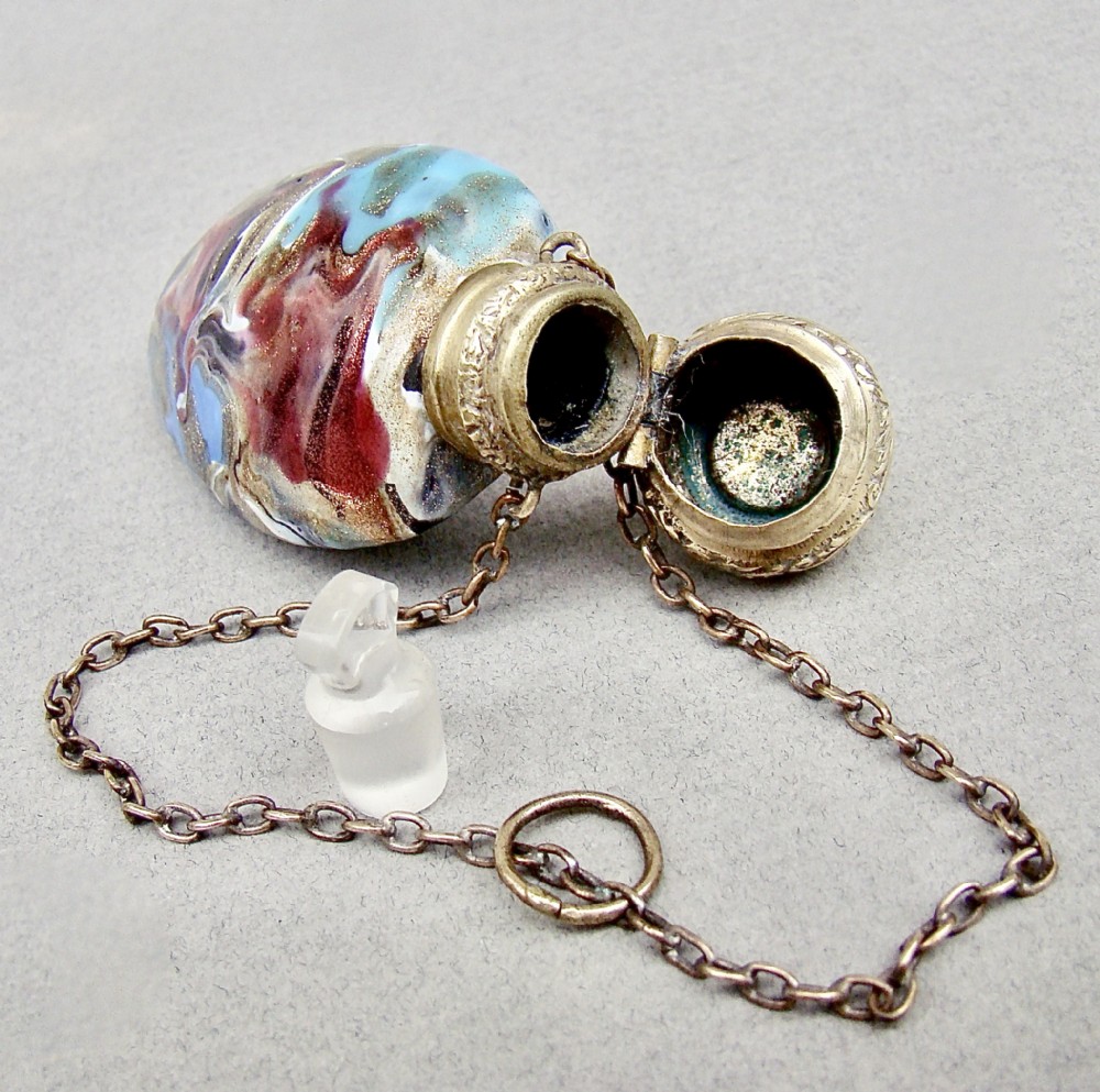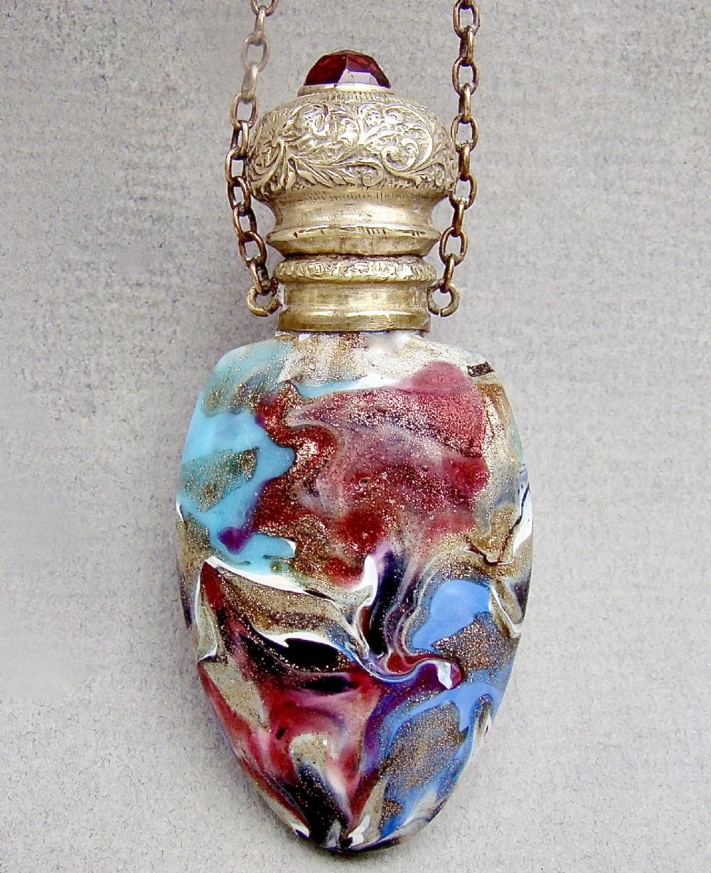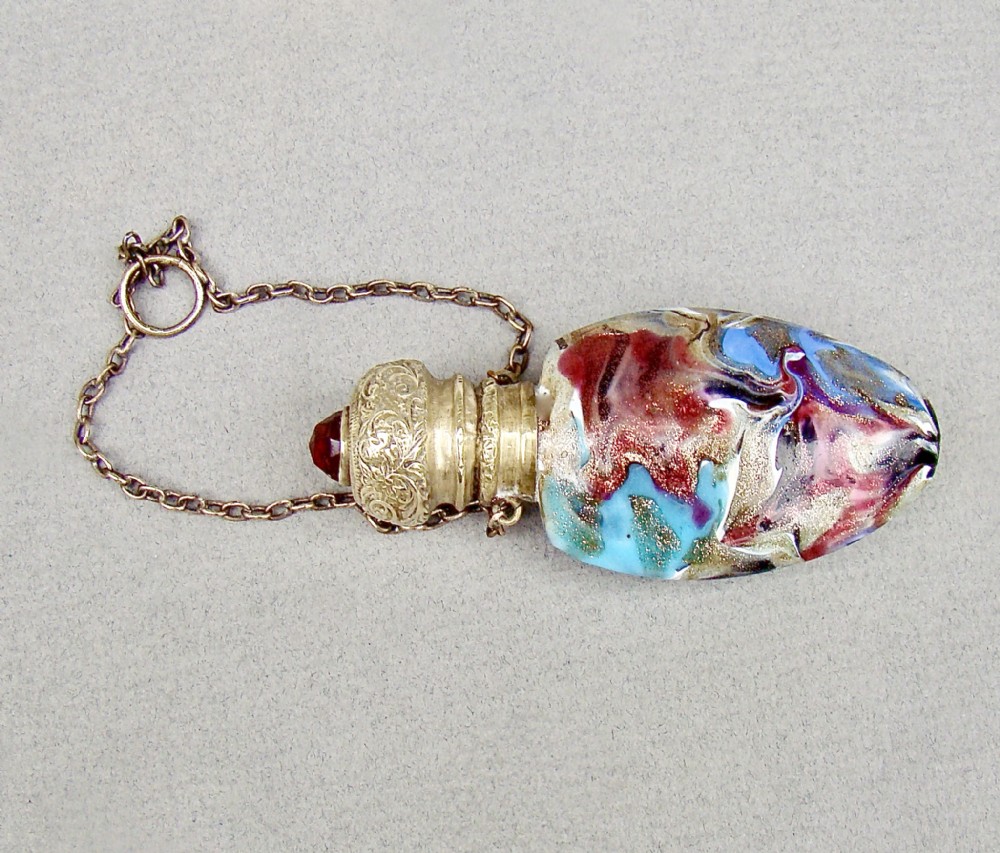 RARE 19TH C. VENETIAN MURRINE GLASS CHATELAINE SCENT BOTTLE, CIRCA 1850