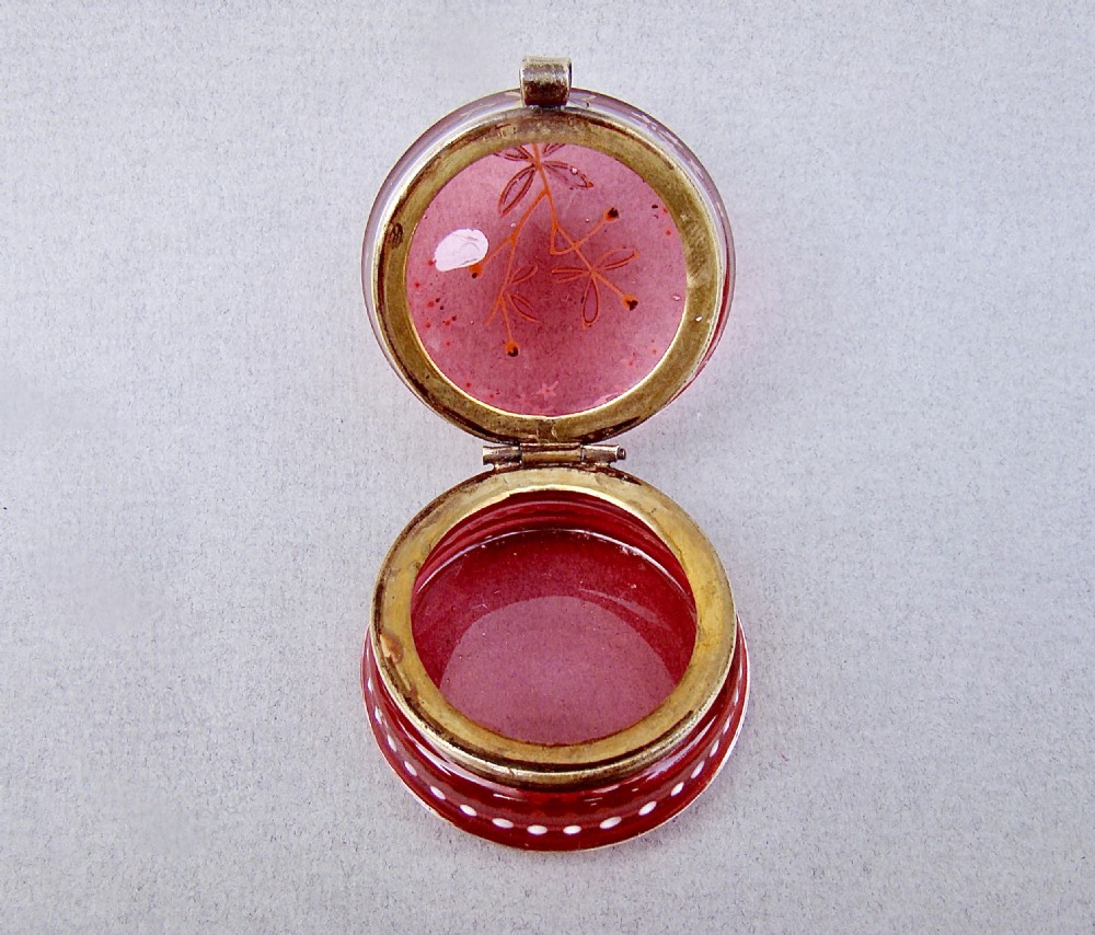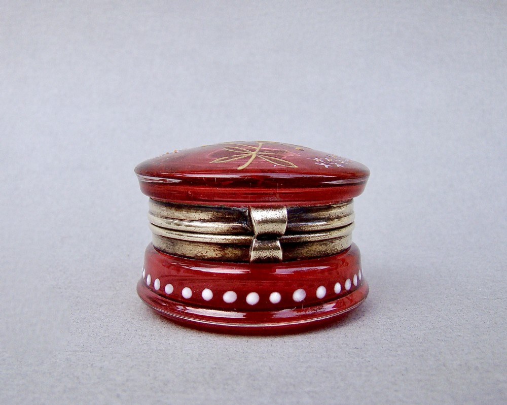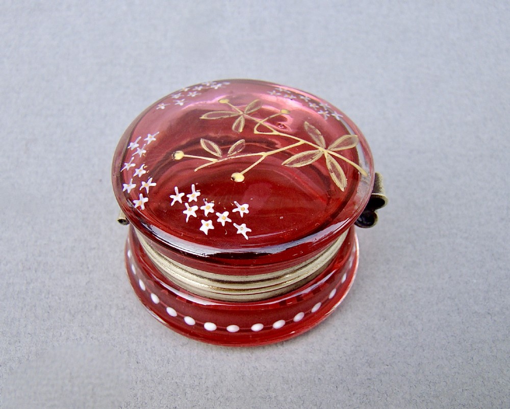 delightful 19th c french enamelled cranberry glass trinket box