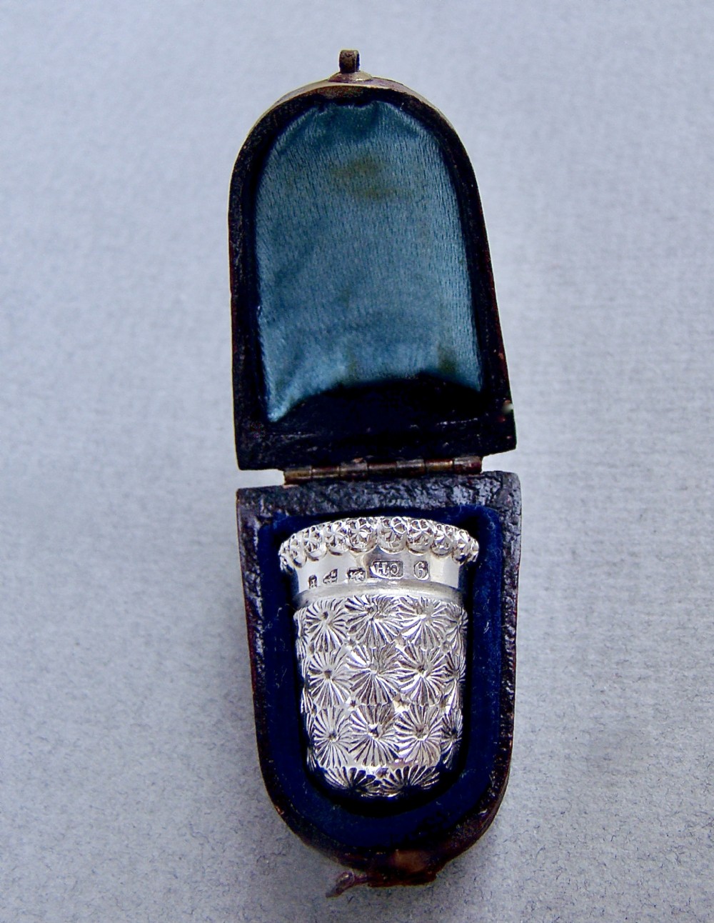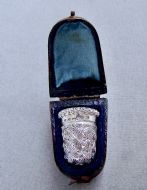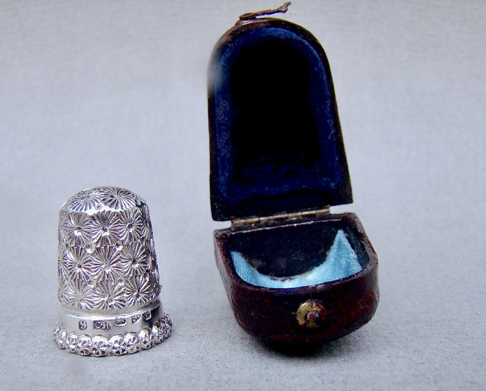 UNUSUAL VICTORIAN SILVER THIMBLE BY CHARLES HORNER, CHESTER 1899, CASED