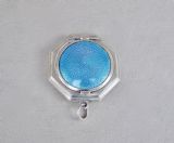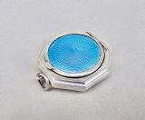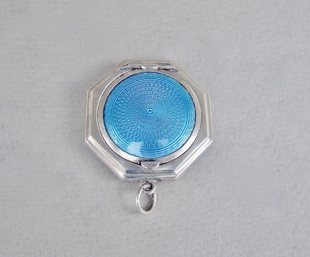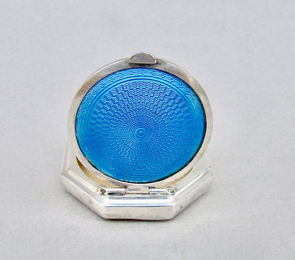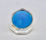 ART DECO SILVER & GUILLOCHE ENAMEL COMPACT BY HENRY MATTHEWS, BIRMINGHAM 1922