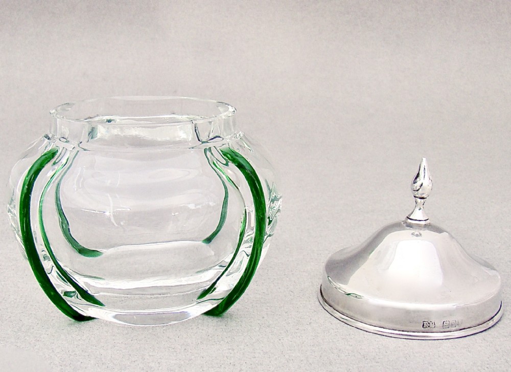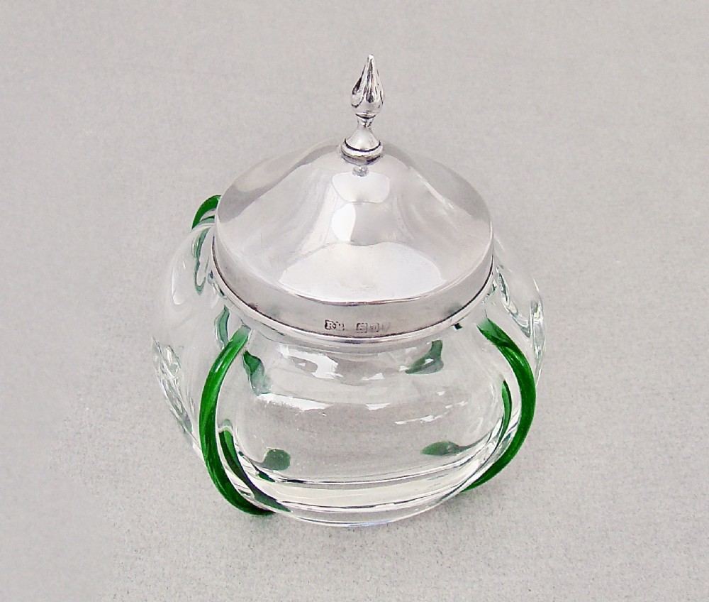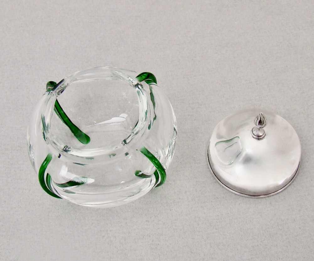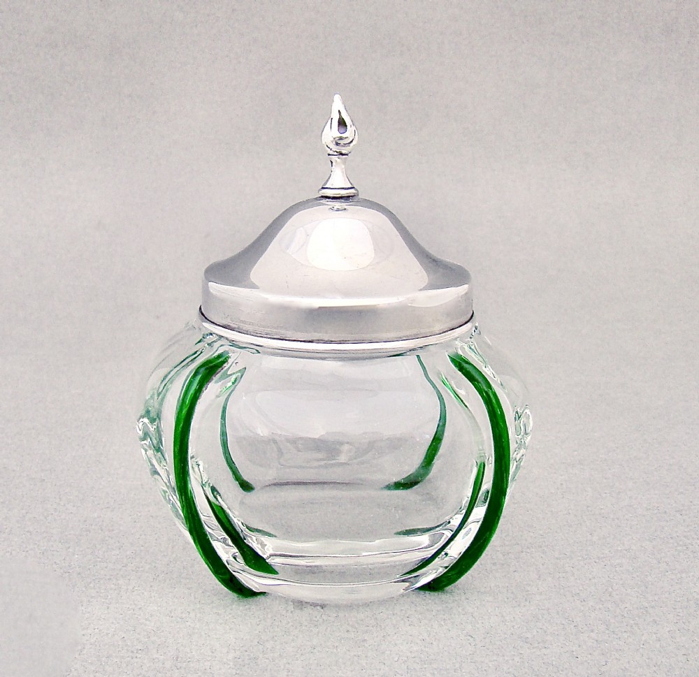 UNUSUAL EDWARDIAN SILVER AND TRAILED GLASS DRESSING TABLE JAR BY ROBERT PRINGLE & SONS, LONDON 1901
