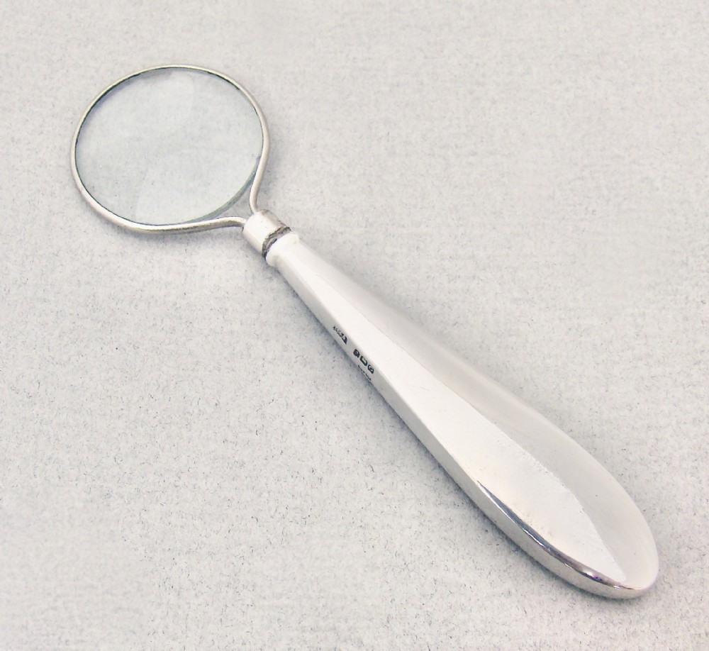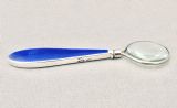 SMALL ART DECO SILVER & GUILLOCHE ENAMEL MAGNIFYING GLASS BY BROADWAY & CO , BIRMINGHAM 1931