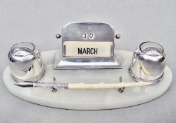 This fabulous and unusual large desk inkwell bears the marks of the renowned silversmith Gustave Keller. *