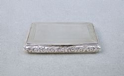 This beautiful George IV silver snuff box was made by Thomas & William Simpson and is dated Birmingham 1824. Of conventional rectangular form, both front and back with an engine-turned background. The hinged cover with a raised foliate border. The sides with reeded decorations.