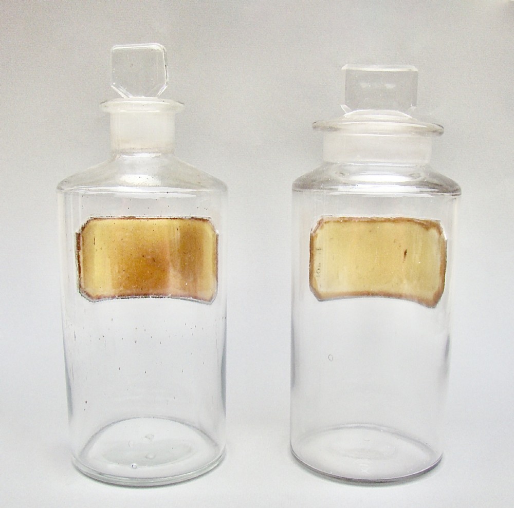 RARE PAIR OF MEDIUM-SIZED VICTORIAN GREY LABEL APOTHECARY BOTTLES, CIRCA 1890