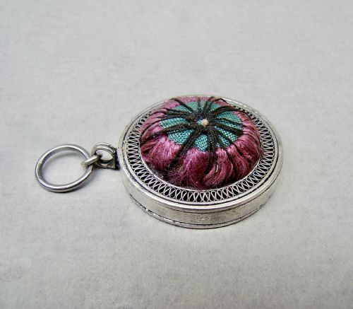 This delightful George V silver "hatching chick" pin cushion was designed by the highly collectable Sampson Mordan & Co and is hallmarked for Chester. The pin cushion is designed as a newly hatched chick sitting in half an egg shell. It is beautifully detailed, with the chick's back being the cushion, which is finished in a dark blue velvet. The chick is 'weighted' in such a way that, should it be knocked over, it will 'right' itself.