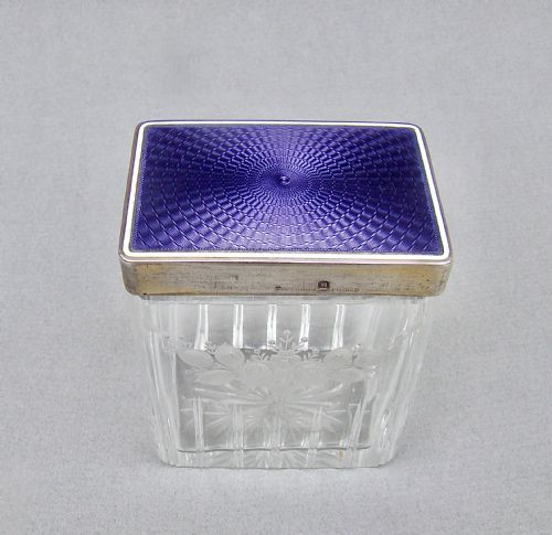 This is a stunning silver mounted, dual colour guilloche enamel, purse mirror made by the renowned Henry Matthews and dated Birmingham 1922. Of oval form with a rich blue guilloche enamel sunburst background within a black enamel border. It has a trapezoid handle. The mirror in clean condition.