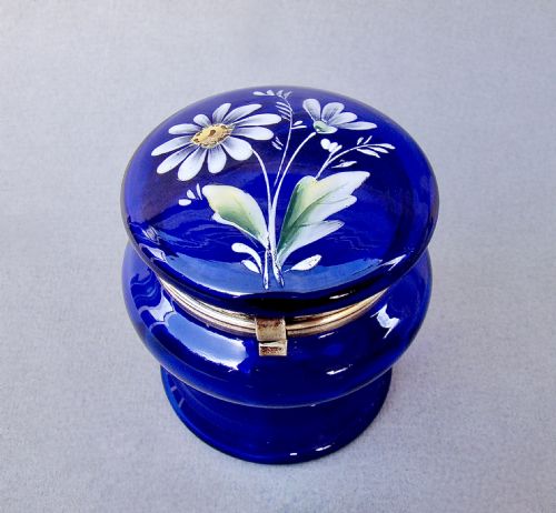 This is a small and very sweet little desk magnifying glass. It has a silver mounted Royal blue guilloche enamel handle, the engine turned enamel inset present on one side of the handle, the other sided plain. Mounted with a 3.5cm diameter steel mount inset with magnifying glass.