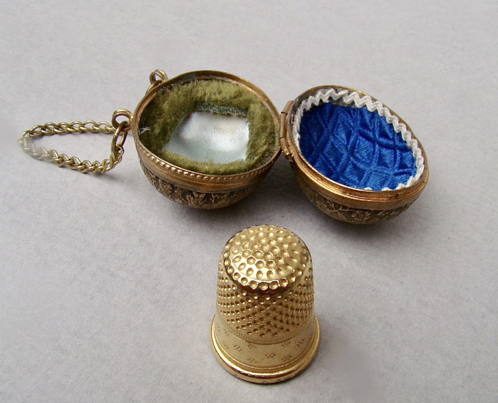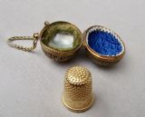 exquisite 19th c french gilt metal thimble in ormulu eggshaped holder