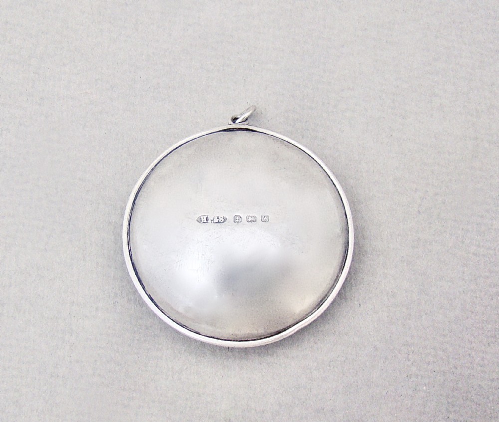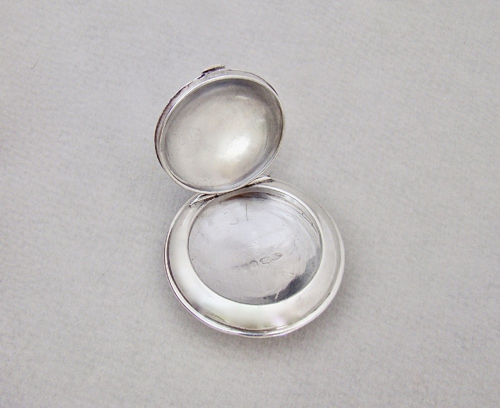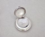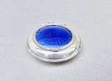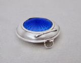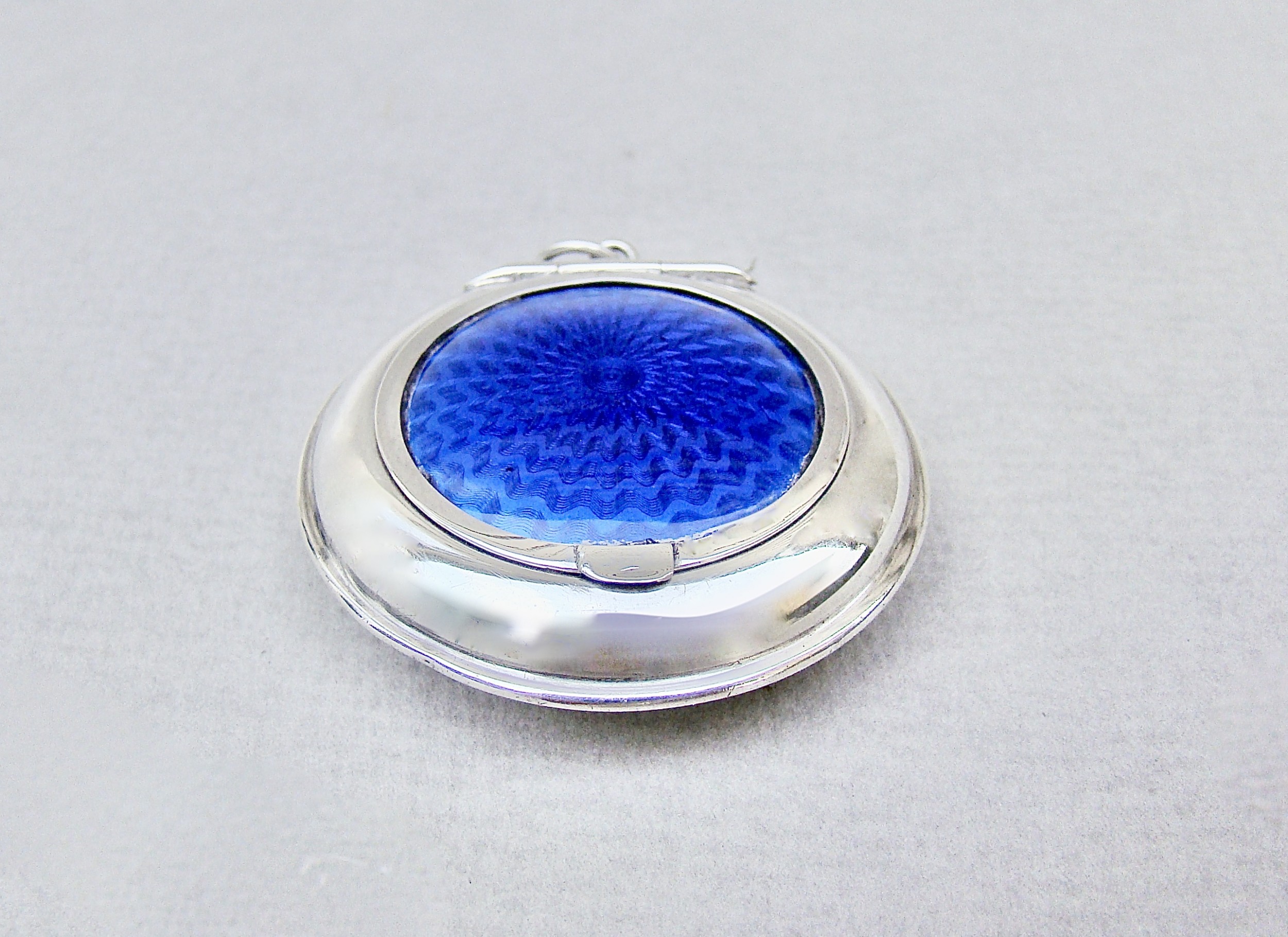 This delightful silver and guilloche compact was made in Birmingham in 1921 by Henry Perkins & SonS. Of circular form, the front decorated with a stunning royal blue colour enamel cabochon. The hinged lid opening to reveal a silver interior. Attachment ring for a chain. Hallmarks: HP&S for Henry Perkins & Sons. Date letter "w" for 1921. Birmingham Assay mark. Lion passant. Condition: Good Enamel in good conditIon. A couple of minor surface scratches commensurate with age and use. Strong hinge. Good clear hallmarks. Back with a minute dimple, commensurate with age and use. Dimensions: Diameter: 4.5cm / 1.6 inches Postage UK: £9 Special Delivery Next day. Postage overseas: £17 International Signed For. You can pay by PayPal, bank transfer, cheque, debit or credit card. To pay by PAYPAL please add P&P and click on button below. To pay by credit or debit card over the phone or by cheque, please contact me on 01449 760 585. Internal Ref: JUIN82