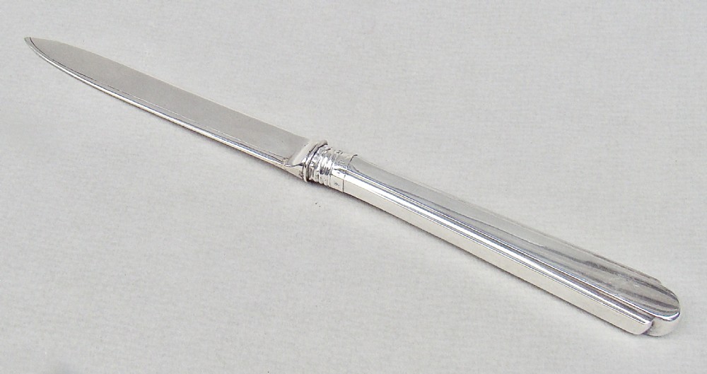 This is a beautiful solid silver and guilloche enamel letter opener or paper knife. The silver handle with an elegant guilloche enamel inset. The back plain. Mounted with a reeded ferrule and a fully hallmarked engraved solid silver blade. It is eye-catching and very elegant. Hallmarks: RM over EH for Richard Martin & Ebenezer Hall. (Martin Hall & Co) Sheffield Assay mark. Lion Passant. Date letters "g" for 1900 Condition: Very good. Dimensions: Length: 26cm / 10 inches. Maximum width: 2cm / 0.5 inches. Postage PLEASE DO NOT FORGET TO ADD POSTAGE AT CHECKOUT. Postage UK: £5 Royal Mail Tracked 24. Postage overseas: £18 International Signed For. You can pay by PayPal, bank transfer, cheque, debit or credit card. To pay by PAYPAL please add P&P and click on button below. To pay by credit or debit card over the phone or by cheque, please contact me on 01449 760 585. Internal Ref: OCT92