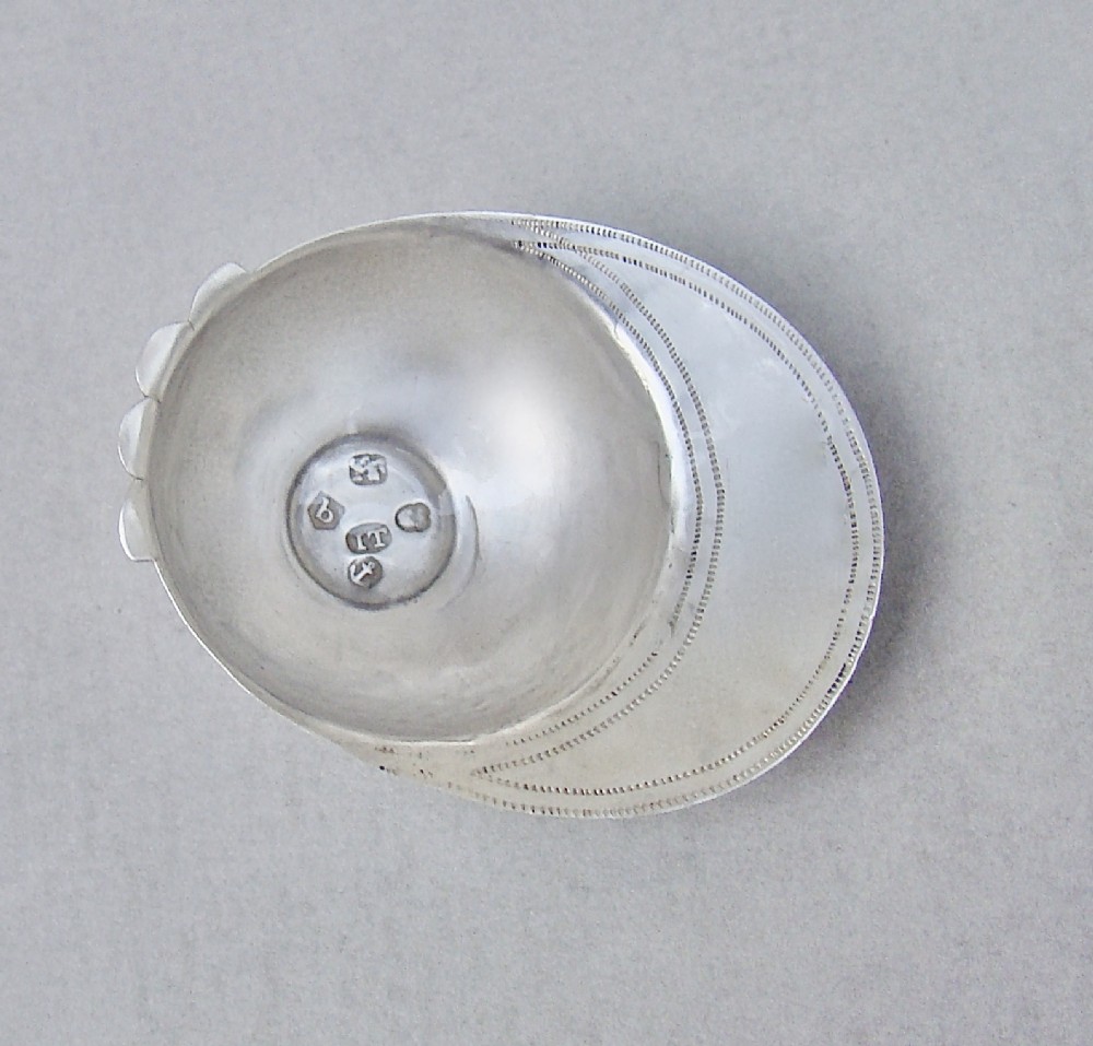 RARE GEORGIAN SILVER JOCKEY CAP CADDY SPOON BY JOSEPH TAYLOR, BIRMINGHAM 1799