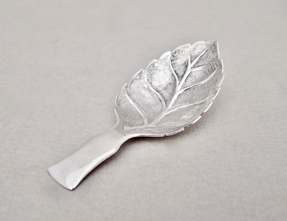 RARE GEORGIAN SILVER LEAF-SHAPED SILVER CADDY SPOON BY ROBERT RUTLAND, LONDON 1807