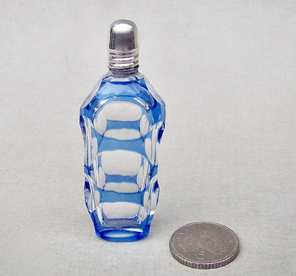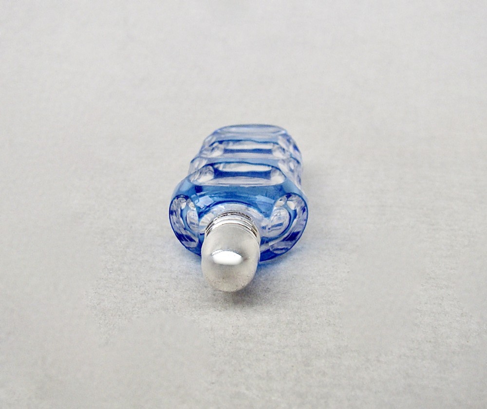 This is an exquisite early Victorian silver and Bohemian glass miniature scent bottle. The silver screw-top lid fitted on a delightful sliced-cut Bristol blue glass body. Hallmarks: Unmarked as it was often the case with scent bottle lids but tested as silver. Dimensions: Height: 5.5cm / 2.2 inches. Width: 2cm / 0.6 inches. Depth: 1cm / 0.3 inches. Condition: Very good. Glass in very good condition. No holes to the lid Strong hinge. Postage: PLEASE DO NOT FORGET TO ADD POSTAGE AT CHECKOUT. Postage UK: £5 Royal Mail Tracked 24 Postage overseas: £15 International Signed For. You can pay by PayPal, bank transfer, cheque, debit or credit card. To pay by PAYPAL please add P&P and click on button below. To pay by credit or debit card over the phone or by cheque, please contact me on 01449 760 585. Internal Ref: NOVE95