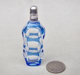EARLY VICTORIAN MINIATURE VICTORIAN SILVER & OVERLAY GLASS SCENT BOTTLE, CIRCA 1850
