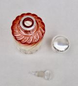 This gorgeous silver lidded Baccarat Rose Teinte glass scent bottle is mounted with a silver neck and lid by the renowned Mappin & Webb and is dated London 1920. The wrythen moulded cylindrical body graduating down from an orange/pink colour to pale amber. The inner lid gilt and the neck fitted with a clear glass stopper. Hallmarks: Mn&Wb for Mappin & Webb. London Assay Mark. Date letter "e" for 1930. Lion Passant. Dimensions: Height: 12.5cm / 5 inches. Diameter: 5.5cm / 2 inches. Condition: Very good. No chips or cracks to the main body. Lid in good condition, one minor ding, . Delivery: PLEASE DO NOT FORGET TO ADD POSTAGE AT CHECKOUT. Postage UK: £5 Royal Mail Tracked 24. Postage overseas: £20 International Signed For. Postage USA (including US import duties): £45.00 You can pay by PayPal, bank transfer, cheque, debit or credit card. To pay by PAYPAL please add P&P and click on button below. To pay by credit or debit card over the phone or by cheque, please contact me on 01449 760 585. Internal Ref: NOVE68