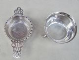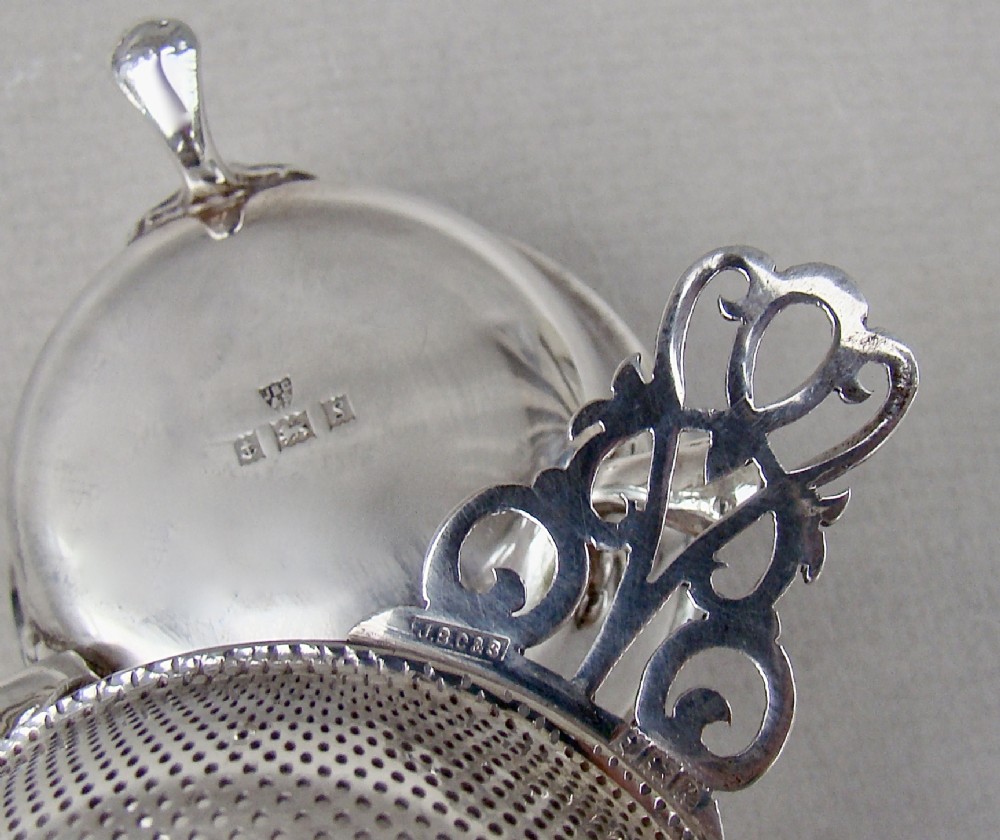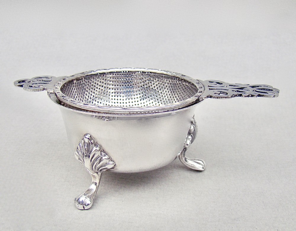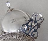 FABULOUS MID-CENTURY SILVER TEA STRAINER & STAND BY CHATTERLEY & SON, BIRMINGHAM 1966