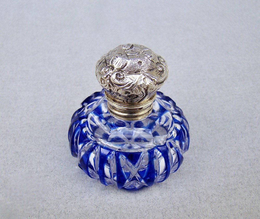 FABULOUS VICTORIAN SILVER MOUNTED BRISTOL BLUE GLASS VINAIGRETTE, CIRCA 1890