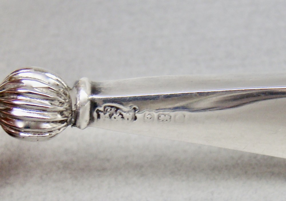 This unusual and elegant small Art Deco silver and shagreen handled magnifying glass was made by the renowned Mappin & Webb and is dated Birmingham 1928. The shagreen handle mounted with a 5cm diameter steel mount inset with magnifying glass. The front of the handle inset with a beautiful jade green shagreen. The back plain silver. A very elegant and timeless piece. Hallmarks: M&W for Mappin & Webb. Birmigham Assay mark. Lion Passant. Date letters "C" for 1928. Condition: Very good. Dimensions: Length: 14cm / 5.4 inches. Diameter: 5cm / 2 inches. Delivery: PLEASE DO NOT FORGET TO ADD POSTAGE AT CHECKOUT. Postage UK: £5 Royal Mail Tracked 24 Postage overseas: £15 International Signed For. You can pay by PayPal, bank transfer, cheque, debit or credit card. To pay by PAYPAL please add P&P and click on button below. To pay by credit or debit card over the phone or by cheque, please contact me on 01449 760 585. Internal Ref: JANV77