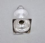 This classic Georgian silver muffineer or pedestal sugar caster is dated London 1796 and bears the marks of the renowned Stephen Adams. The baluster body with a detachable pierced cover. The cover with acorn finial. Raised on a square pedestal base. One side engraved with initials A.H, most probably engraved in Georgian times.