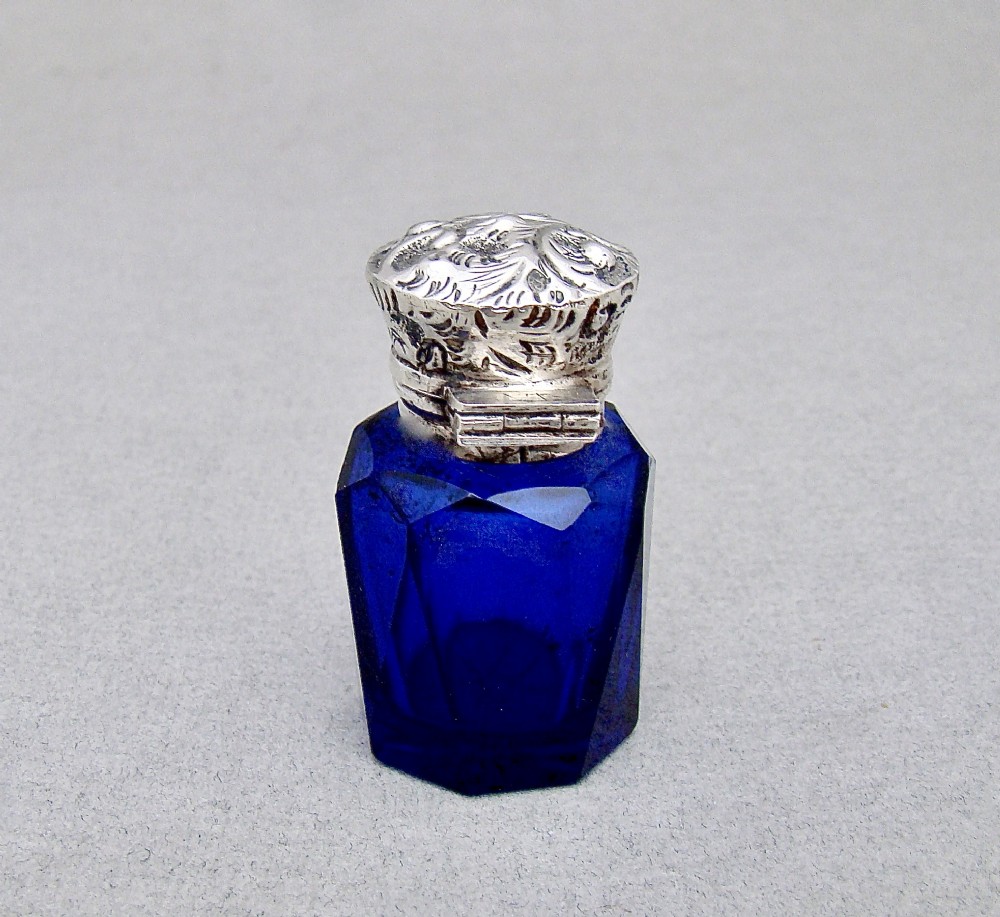 This pretty Victorian silver mounted cut glass scent bottle is in the sought-after Bristol blue colour. The faceted body with an embossed fully hallmarked hinged lid opening to reveal a clear glass stopper. The base star incised. Hallmarks: G&Co for Griffith & Co. London Assay mark. Lion passant. Date letter "e" for 1900. Dimensions: Height: 5cm - 2 inches. Diameter: 2.5cm - 1 inch. Condition: Glass in very good condition. Inside of neck in excellent condition. No cracks. Silver lid in very good condition. Glass stopper in very good condition. Postage: PLEASE DO NOT FORGET TO ADD POSTAGE AT CHECKOUT. Postage UK: £5 Royal Mail Tracked 24. Postage overseas: £20 International Signed For. Postage USA (including US import duties): £45.00 You can pay by PayPal, bank transfer, cheque, debit or credit card. To pay by PAYPAL please add P&P and click on button below. To pay by credit or debit card over the phone or by cheque, please contact me on 01449 760 585. Internal Ref: FEV78