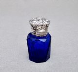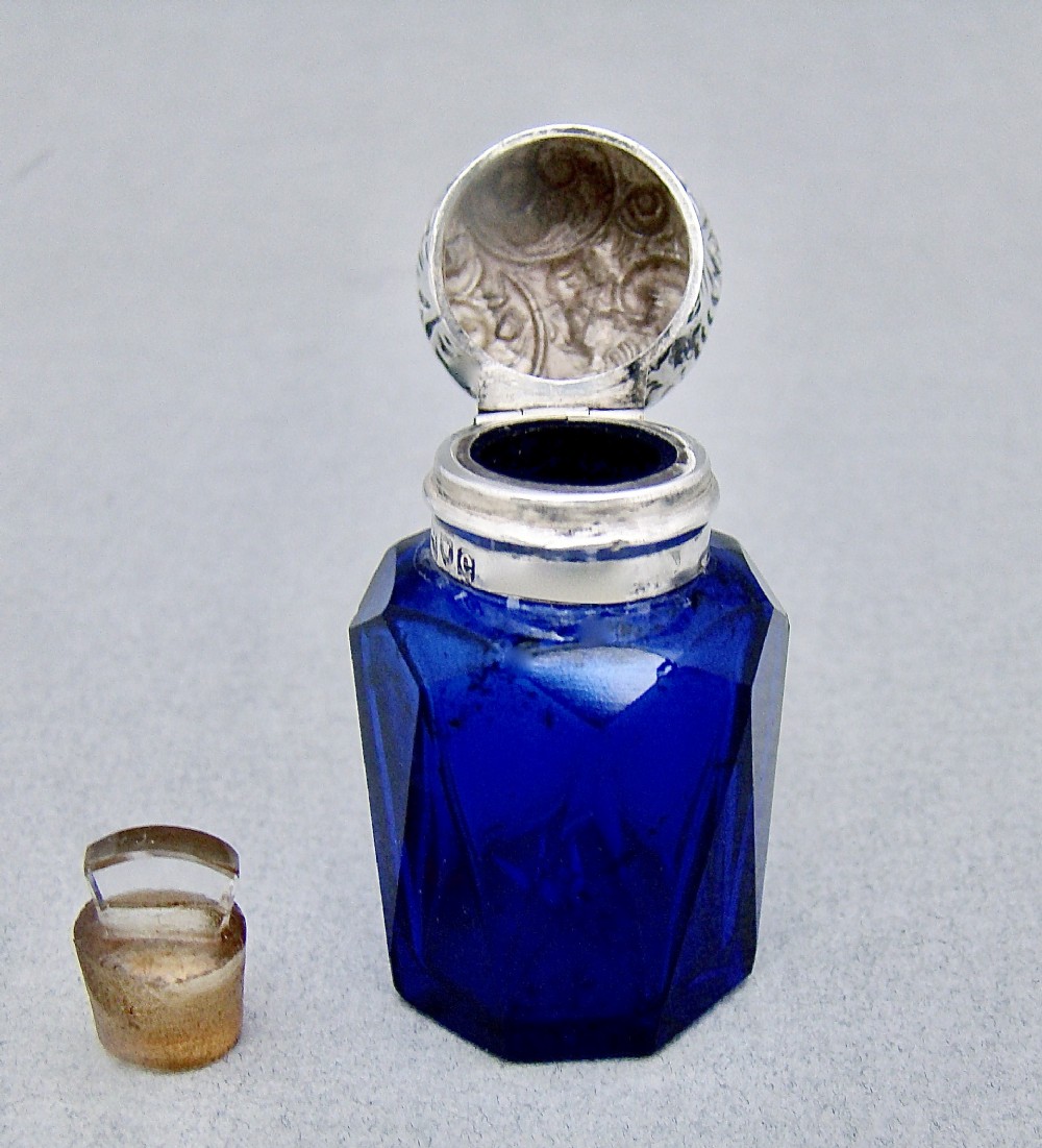 SMALL VICTORIAN SILVER MOUNTED BRISTOL BLUE GLASS SCENT BOTTLE BY GRIFFITH & CO, LONDON 1900