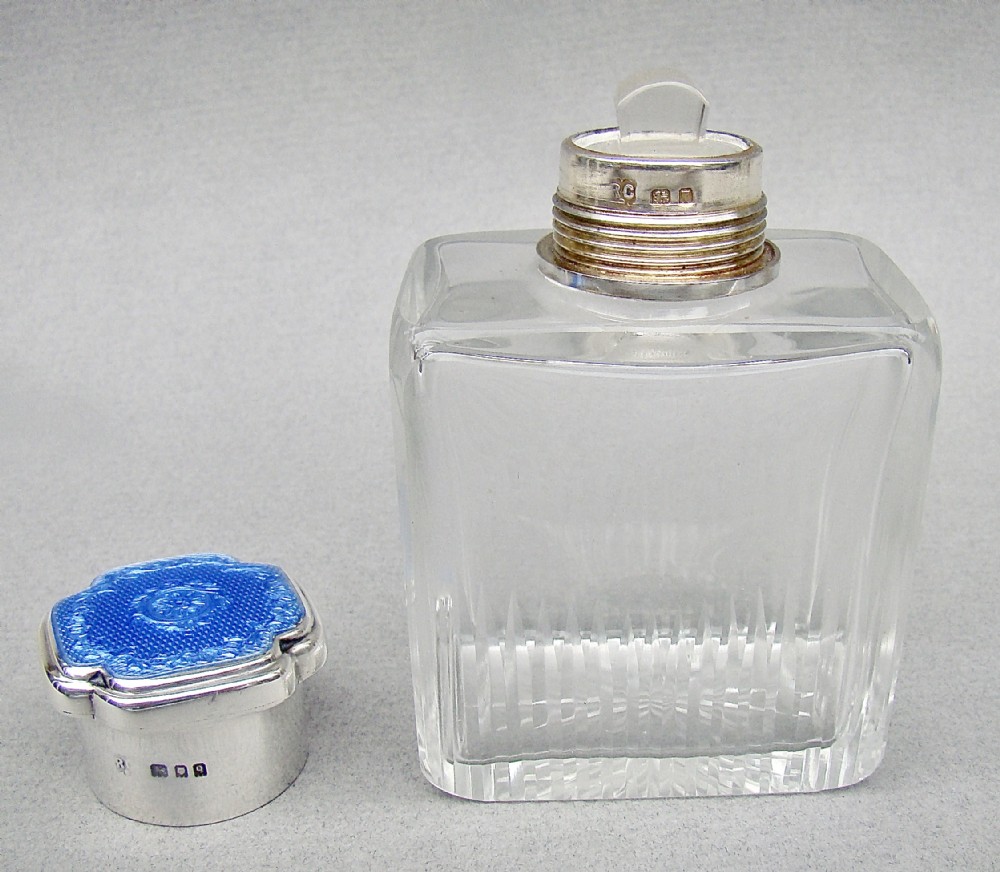 art deco silver guilloche enamel scent bottle by richard comyns london 1931